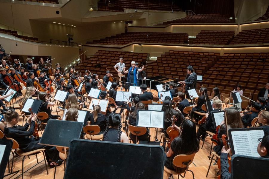Mit sinfonischen Werken tritt das Jugendorchester, welches sich aus Schülerinnen und Schülern der 6. bis 8. Klassen bildet unter der Leitung von Heike Scharffenberg im Händelsaal am Frankfurter Tor auf.